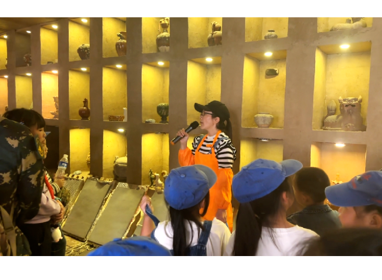 学生们参观展厅,在这里可以看到未上釉的素胎、多种多样古现代的陶器模子、体型特别高大的三彩马等各种精致的陶器工艺品。同学们一边观察,一边聆听,一边记录,感受陶文化的历史渊源。