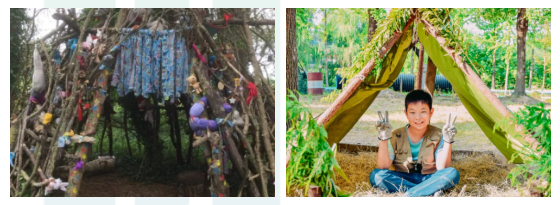 艾草香薰蜡烛制作,体验色彩搭配和造型设计,培养审美能力和艺术创造力;庇护所搭建和沼泽取果任务,学生在自然环境中寻找美感,培养与自然和谐共处的生态审美观。