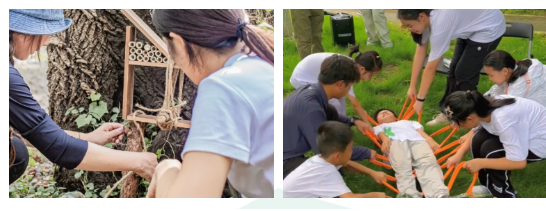 香薰蜡烛制作和绳结编织活动,锻炼精细动作和手眼协调能力;庇护所搭建和沼泽取果任务提升体能素质和肢体协调能力。