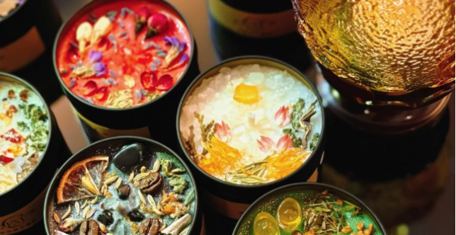 学习大豆蜡、蜂蜡、艾草精油、艾粉、烛芯等材料特性及使用方法;结合手工技艺与芳香疗法,设置原料配比(蜂蜡、艾草精油、干花搭配)、熔蜡制模(温控与模具使用)、创意装饰(干花镶嵌与标签设计)3步制作流程,演示香薰蜡烛制作的完整流程;学生分组制作艾草香薰蜡烛,体验从融化蜡基到装饰的全过程;各组展示作品并分享设计理念和制作心得。