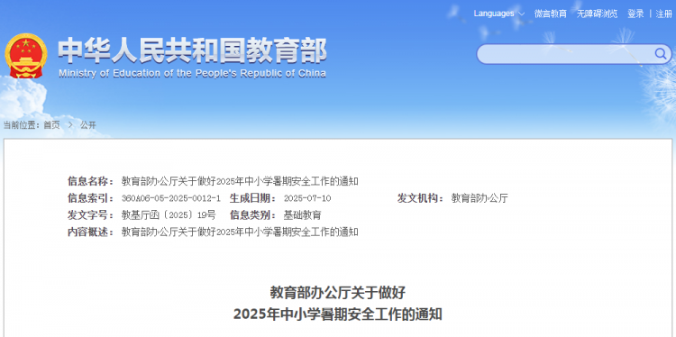 1.教育部发通知,部署2025年中小学暑期安全工作