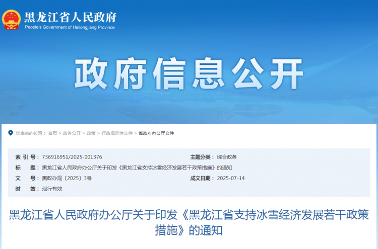 7月14日,黑龙江省人民政府办公厅印发《黑龙江省支持冰雪经济发展若干政策措施》(简称《政策措施》),涉及六大方面,共计21项具体措施。