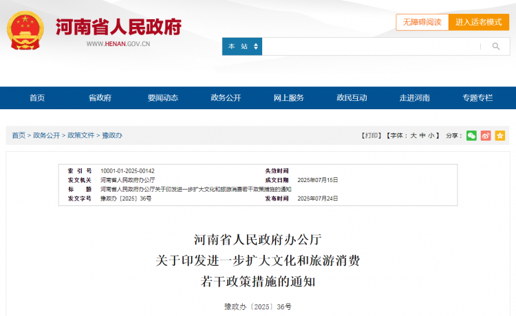 近日,河南省政府办公厅正式印发《进一步扩大文化和旅游消费若干政策措施》(以下简称《措施》),围绕释放需求、扩大供给、引爆市场、优化环境、强化保障等五大维度推出17条硬核举措,剑指中原文旅消费新蓝海。