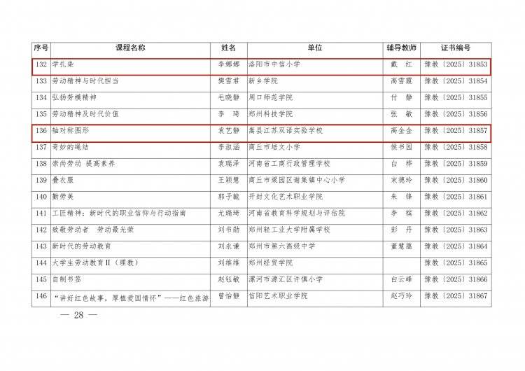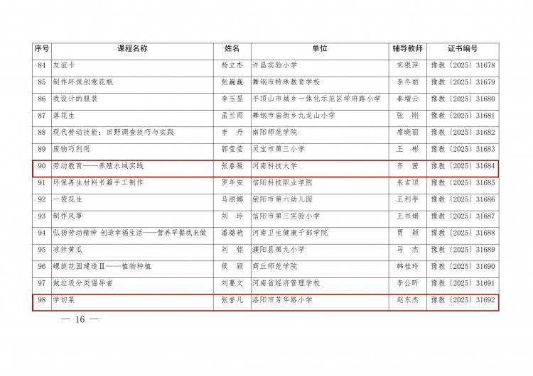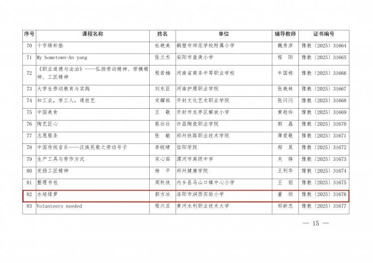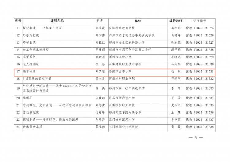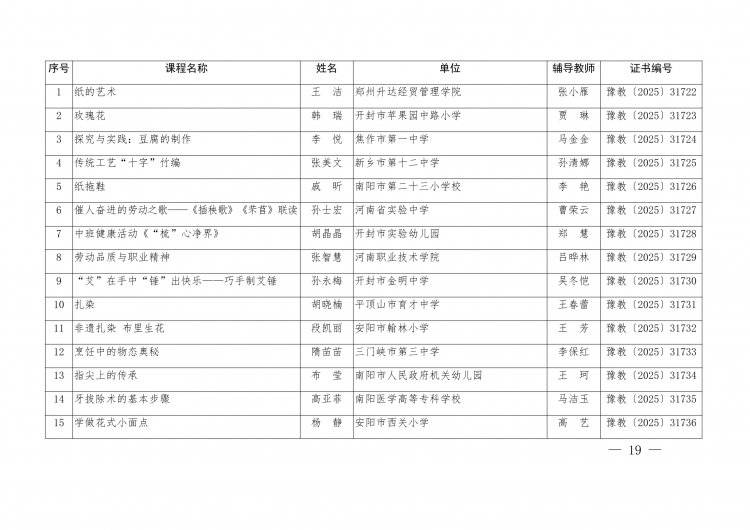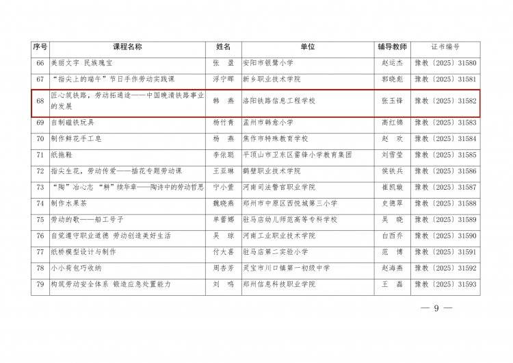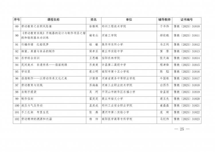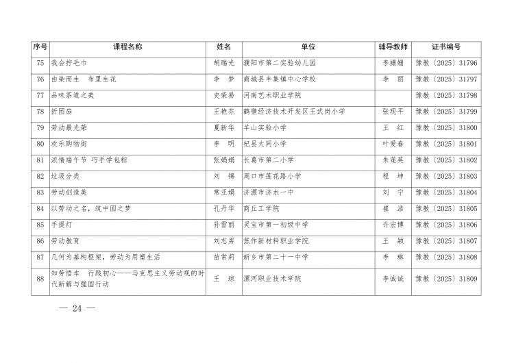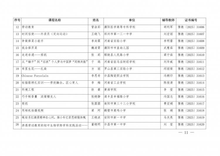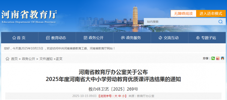 2025年度河南省大中小学劳动教育优质课评选结果的通知