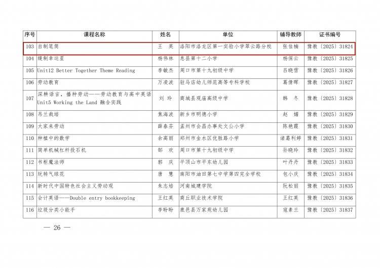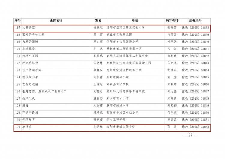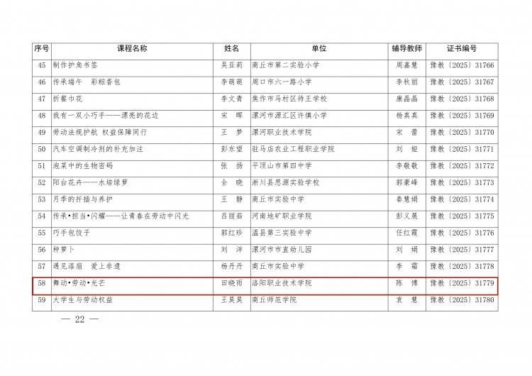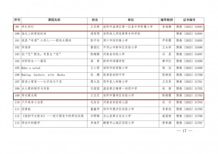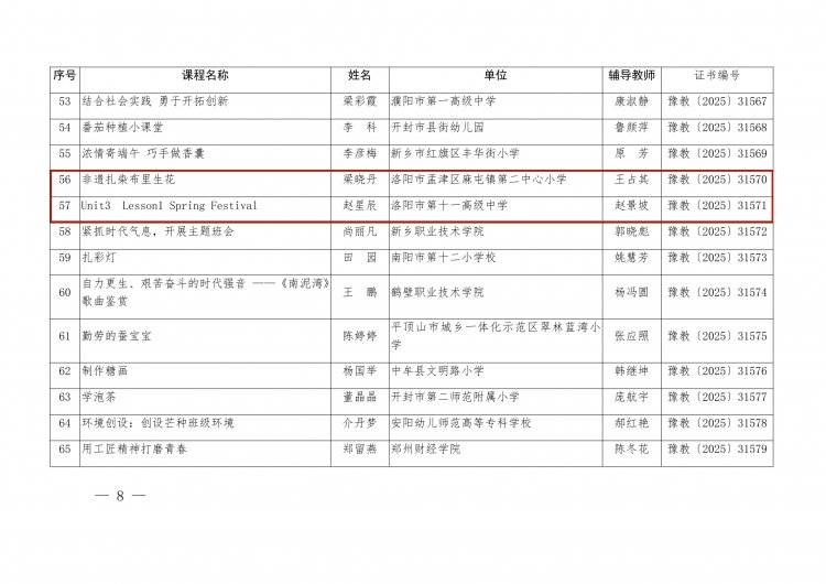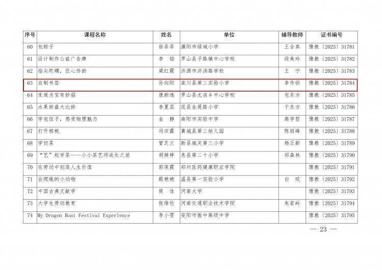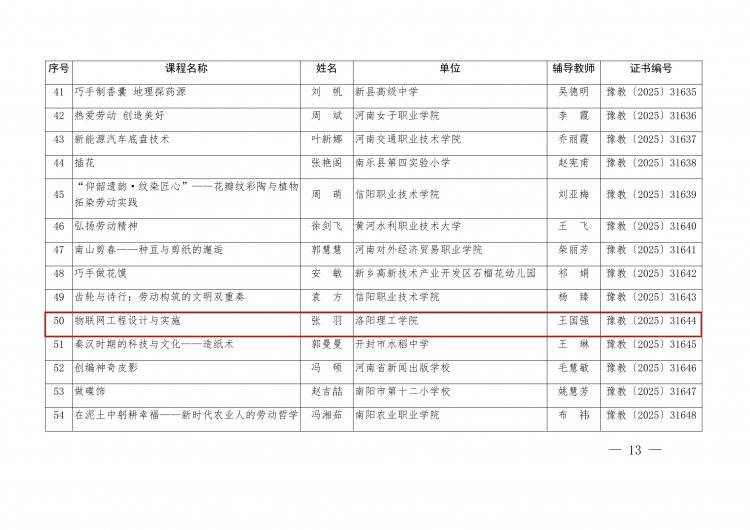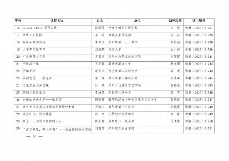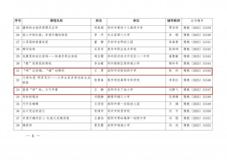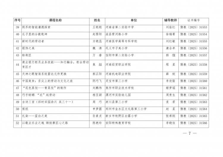 2025年度河南省大中小学劳动教育优质课评选结果的通知
