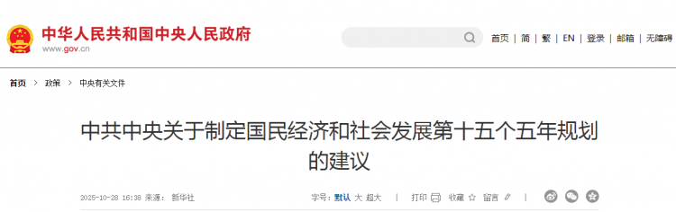 10月28日,《中共中央关于制定国民经济和社会发展第十五个五年规划的建议》公布。