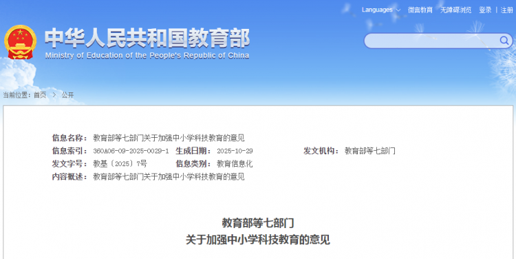 教育部等七部门关于加强中小学科技教育的意见
