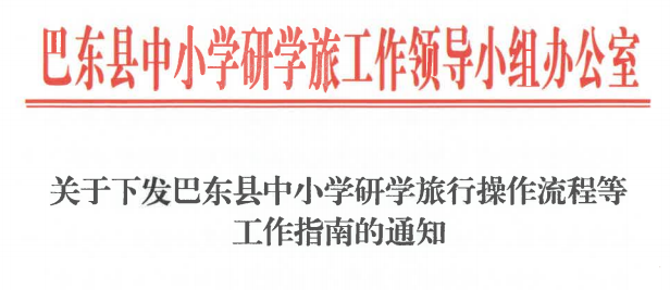 为使全县中小学研学旅行工作流程简化、操作规范,近日,巴东县中小学研学旅工作领导小组办公室下发《巴东县中小学研学旅行操作流程指南》《巴东县中小学研学旅行课程管理程序》。