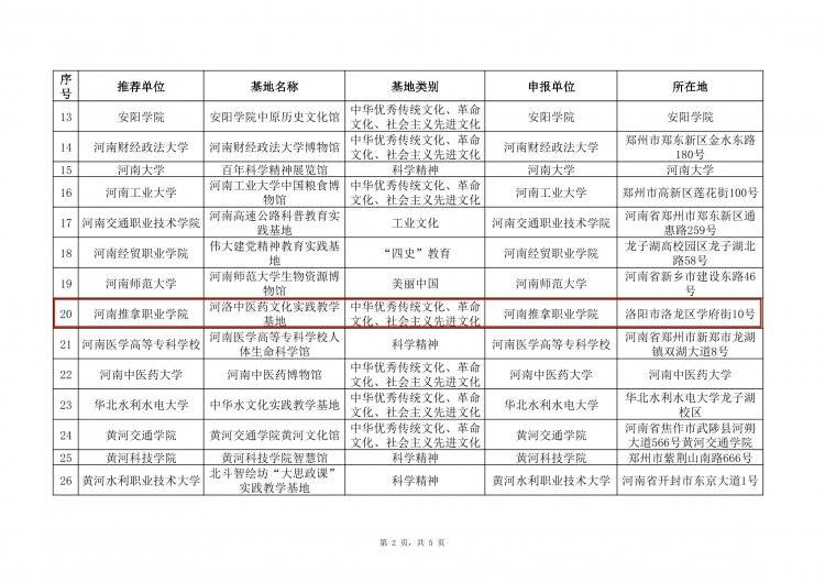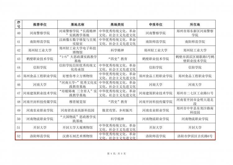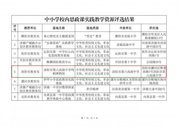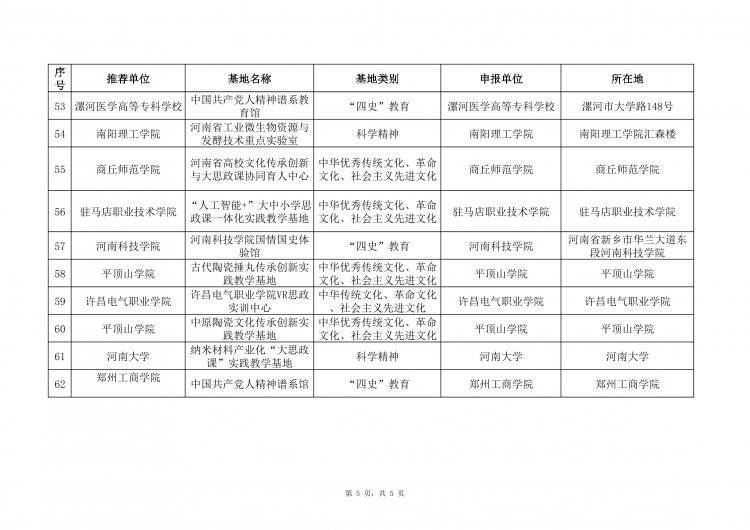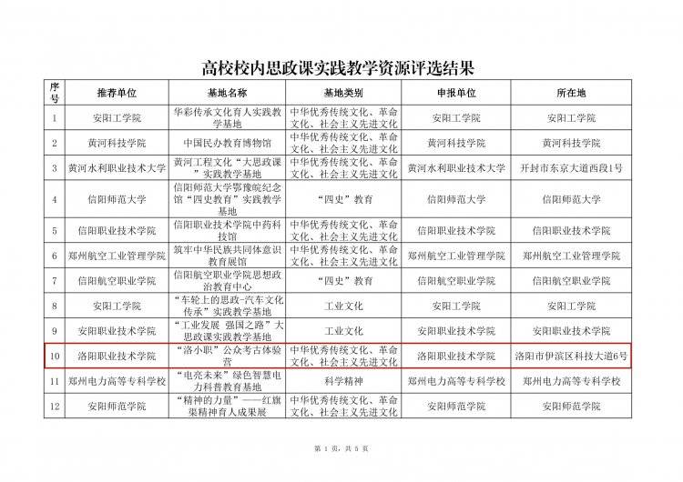根据《中共河南省委宣传部 中共河南省委教育工委 河南省教育厅关于征集优秀“大思政课”实践教学基地建设案例的通知》(豫教工委〔2024〕240 号)精神,经单位申报、资格审查、专家评审、综合评议等环节,评选出高校校内思政课实践教学资源62个、中小学校内思政课实践教学资源44个、校外思政课实践教学资源44个。现将评审结果予以公示。