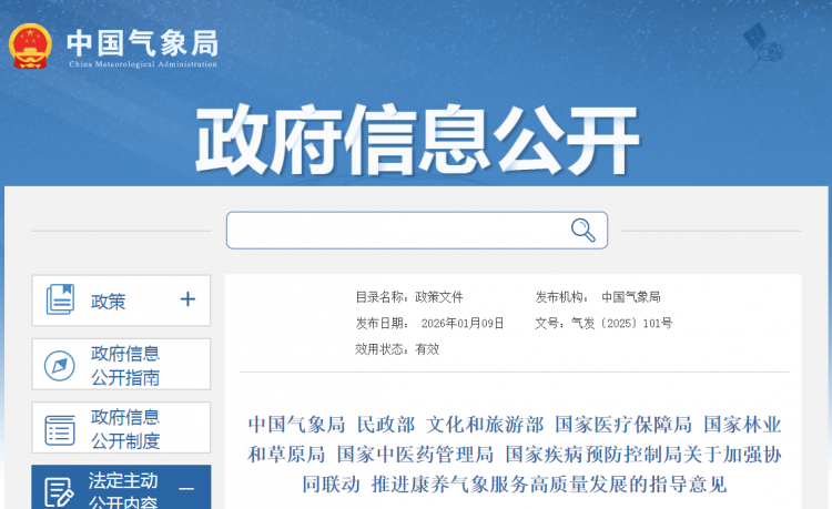 近日,中国气象局、民政部、文化和旅游部、国家医保局、国家林业和草原局、国家中医药管理局、国家疾病预防控制局等七部门联合出台《关于加强协同联动推进康养气象服务高质量发展的指导意见》(以下简称《指导意见》)。