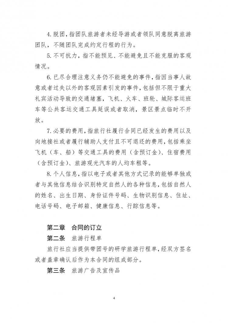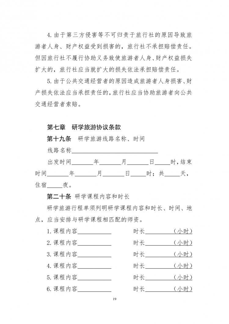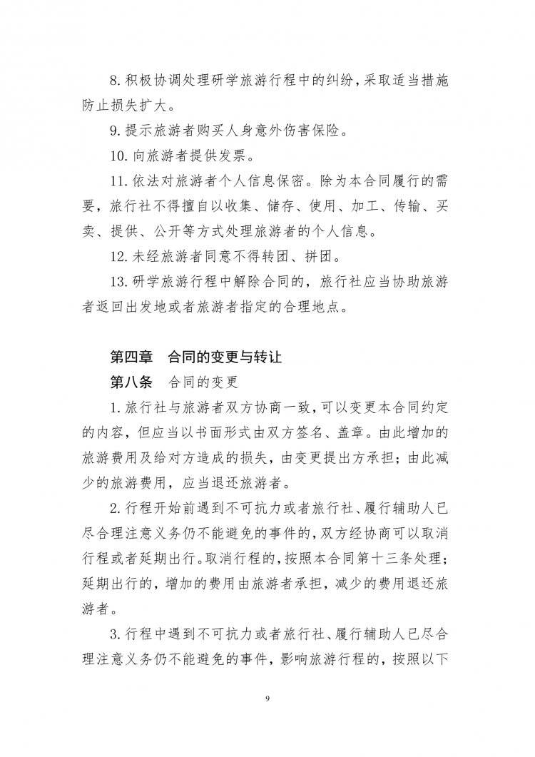 为进一步规范旅游市场秩序,提升旅游服务质量,保障旅游者和旅行社企业合法权益,文化和旅游部会同市场监管总局对现行团队旅游合同(示范文本)进行了修订,新增了《研学旅游合同(示范文本)》。
