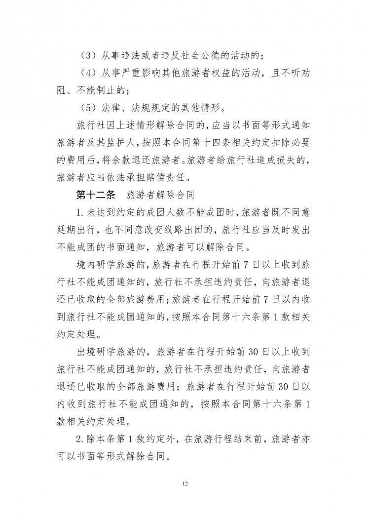 2026年版团队旅游合同(示范文本)的通知