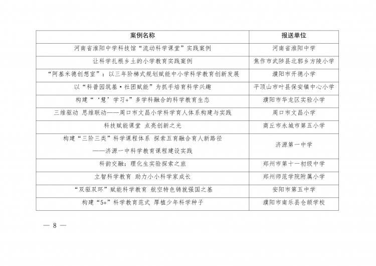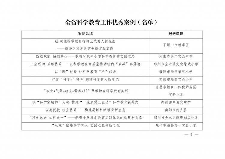 全省“双减”及科学教育工作优秀案例评选结果的通知