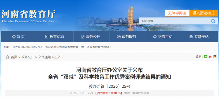 来源:河南省教育厅 发表时间:2026-01-27 浏览次数:652