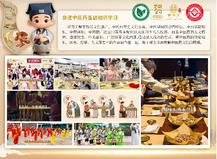 麟信堂中医药非遗研学实践教育基地位于宜阳县西郊,河南省级非物质文 化遗产,河南省首批百年“老字号”抢救工程项目,课程依托国家级河洛文化 生态实验保护区“非遗传承馆”和“非遗工坊”研究开发,开设中医药文化启 蒙课,结合地域特色资源和非遗技艺传承、沉浸式体验课堂,激发学生对中医 药文化的探索兴趣和热爱。致力于传承中医药文化、推广中医药知识,结合教 育、旅游与实践,服务于青少年素质类教育、科普实践研学。 为了研学学子能深入感受中医药文化,基地精心设计了一系列多元化、沉 浸式的研学课程与项目,兼顾知识性、趣味性与实践性,满足不同年龄段学习。 在这里,每一位学子都能在探索中医药奥秘的过程中,感受中华优秀传统 文化的博大精深,收获知识与成长,开启一段难忘的中医药文化研学之旅。