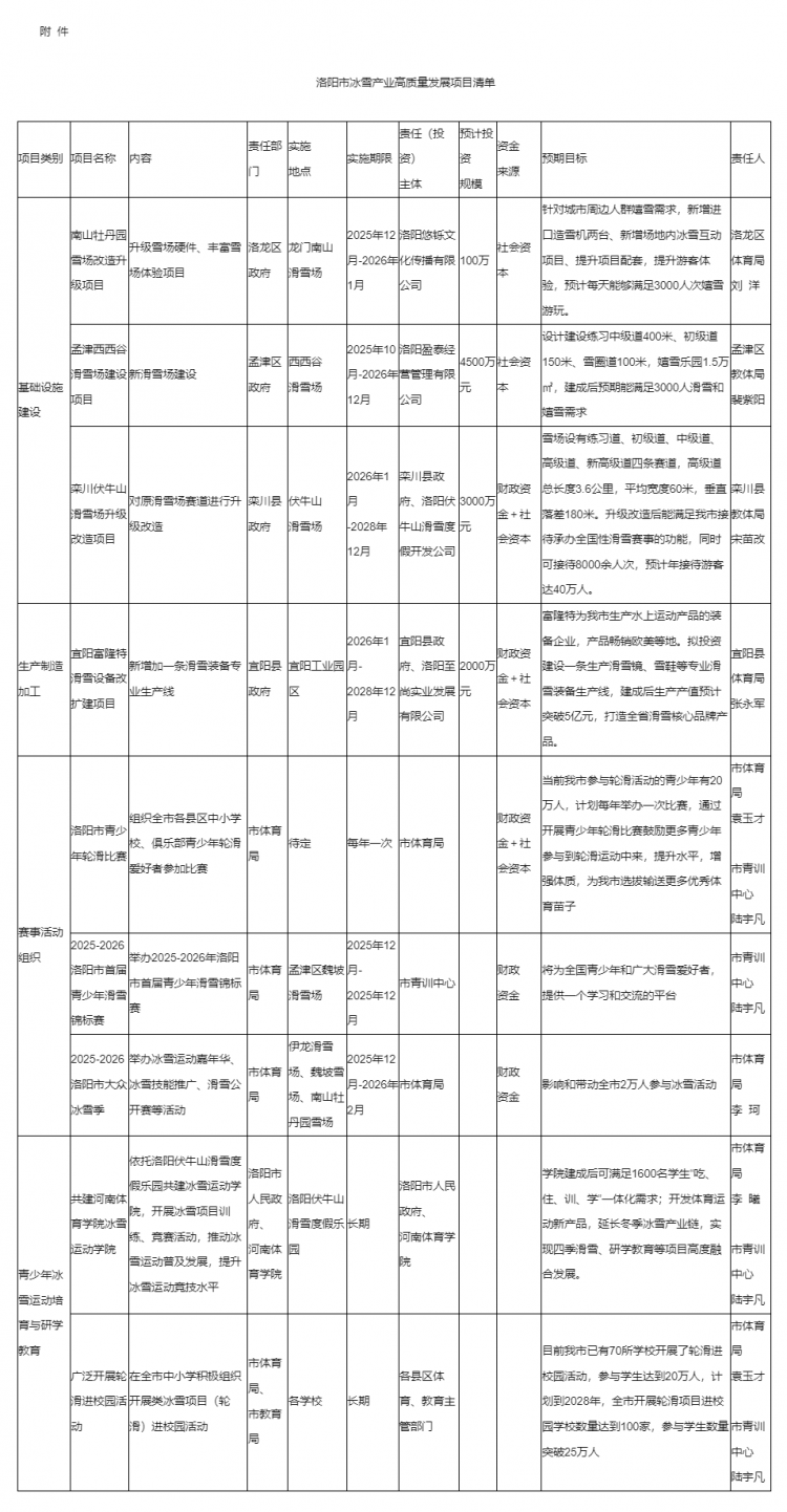 附件:洛阳市冰雪产业高质量发展项目清单